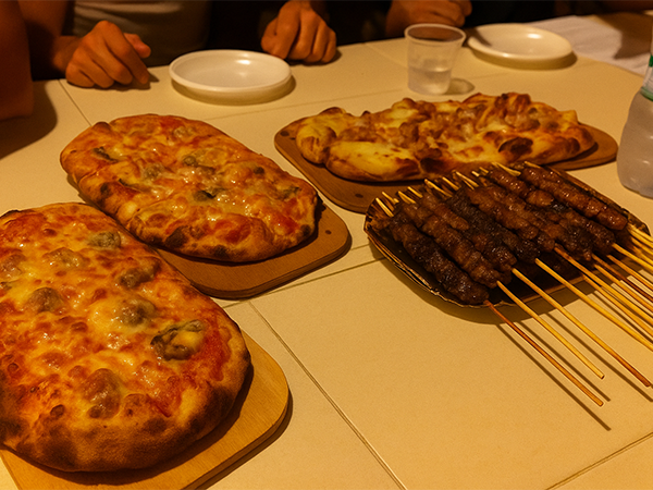 - Originalità: l'accostamento pizza + arrosticini + bibite illimitate è piuttosto unico nella scena romana, e dà a Mr. Pizzami una posizione distintiva.