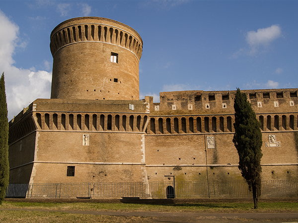 La struttura presenta una pianta triangolare distintiva con tre torrioni posizionati ai vertici, due dei quali circolari e uno poligonale di dimensioni maggiori che ingloba la preesistente torre fatta erigere da Papa Martino V nel 1423. Il complesso è caratterizzato da un circuito perimetrale di casematte, ovvero camere da sparo utilizzate per la difesa, collegate da un cammino di ronda che percorre l'intero perimetro. Un ampio fossato, originariamente alimentato dalle acque del Tevere, circondava la fortezza, completando il sistema difensivo.